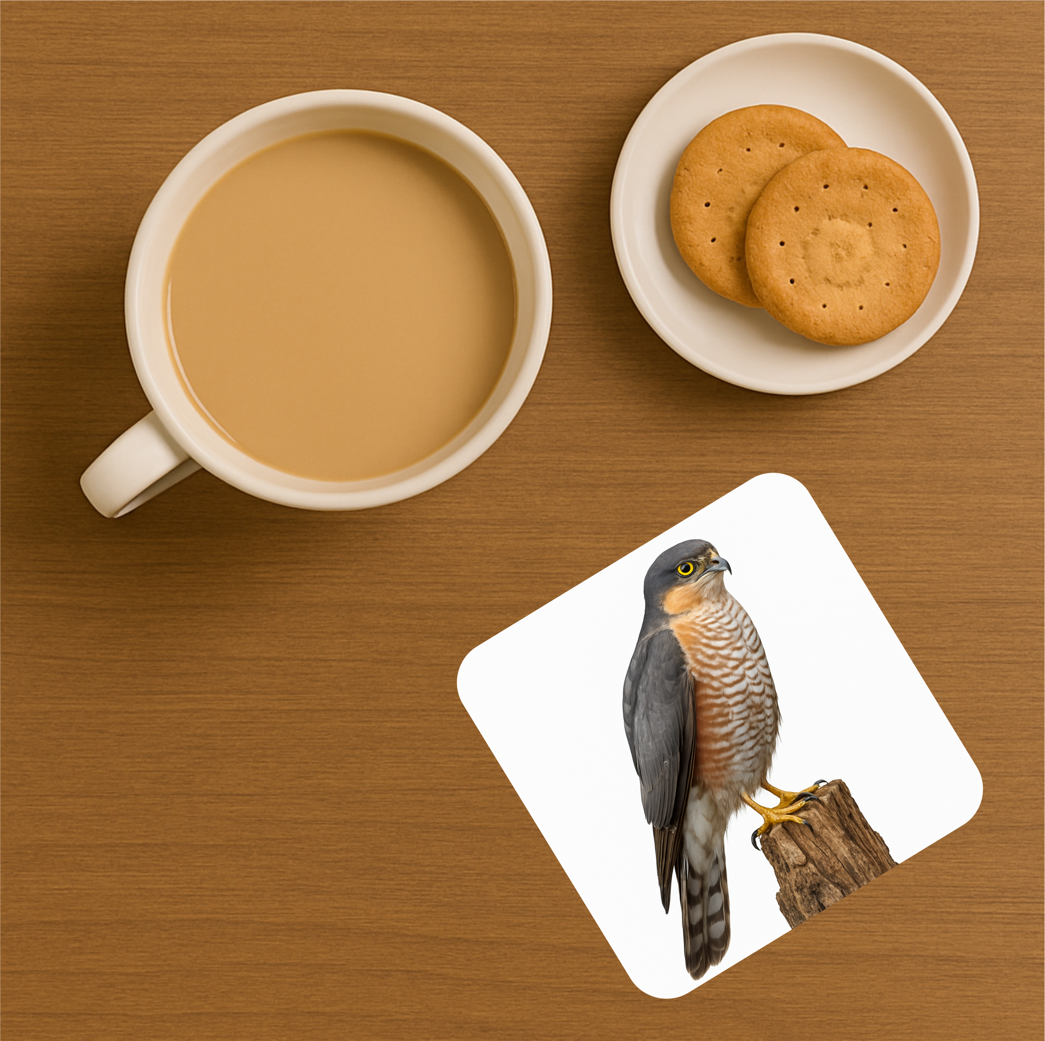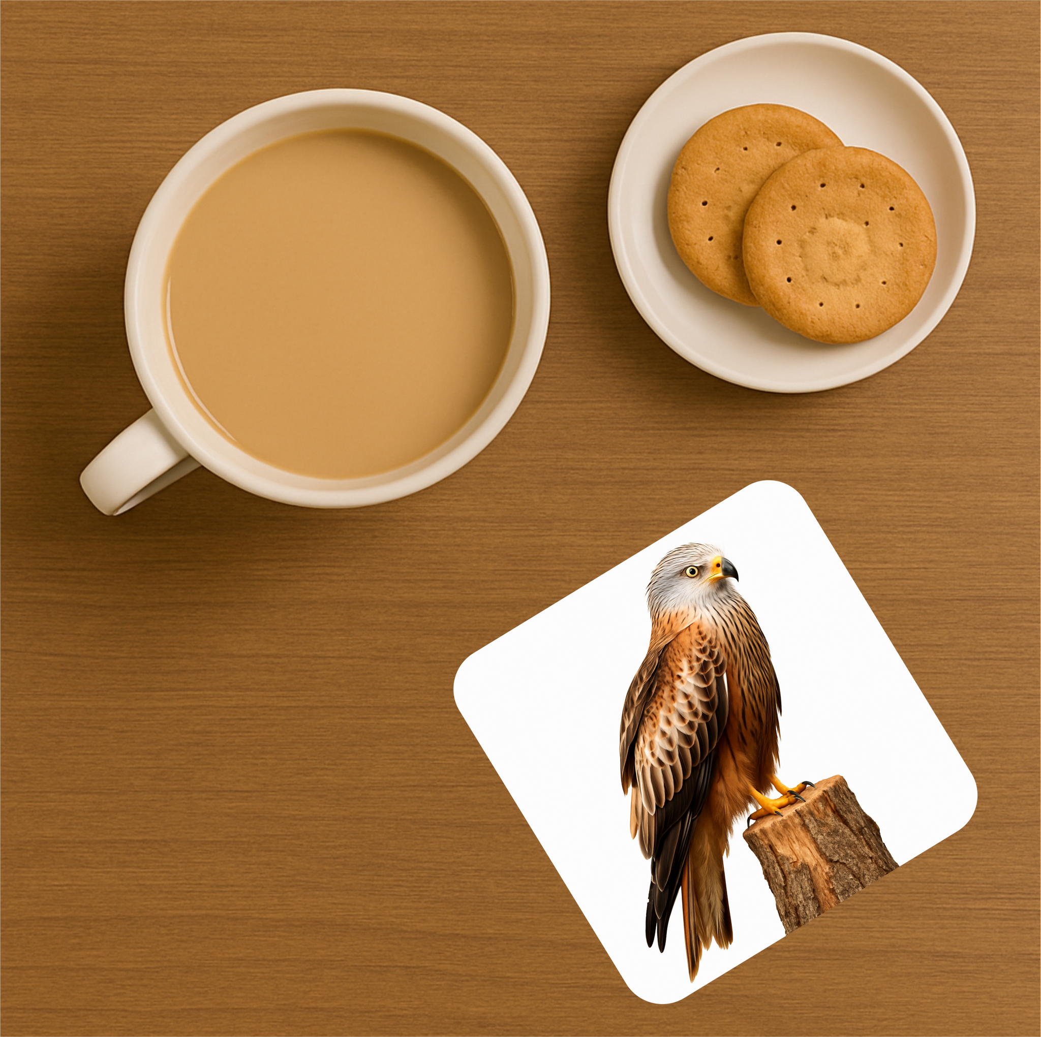- 1 × cork coaster with your chosen bird of prey design